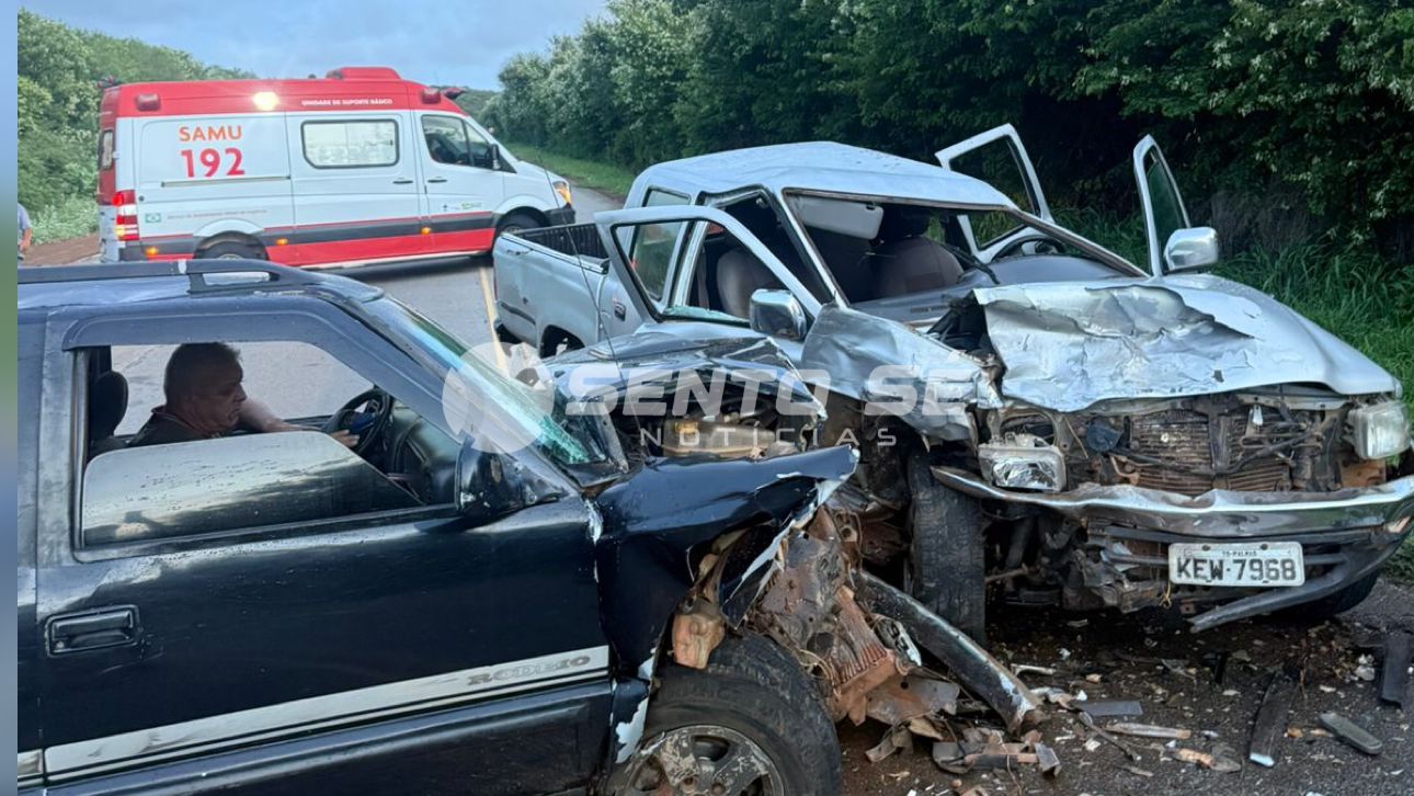 Uma colisão frontal entre duas picapes foi registrada na manhã deste domingo (1º), na BA-210, nas proximidades da antiga Frutimag. O impacto envolveu um carro preto e um veículo prata e mobilizou equipes de socorro para atendimento às vítimas.