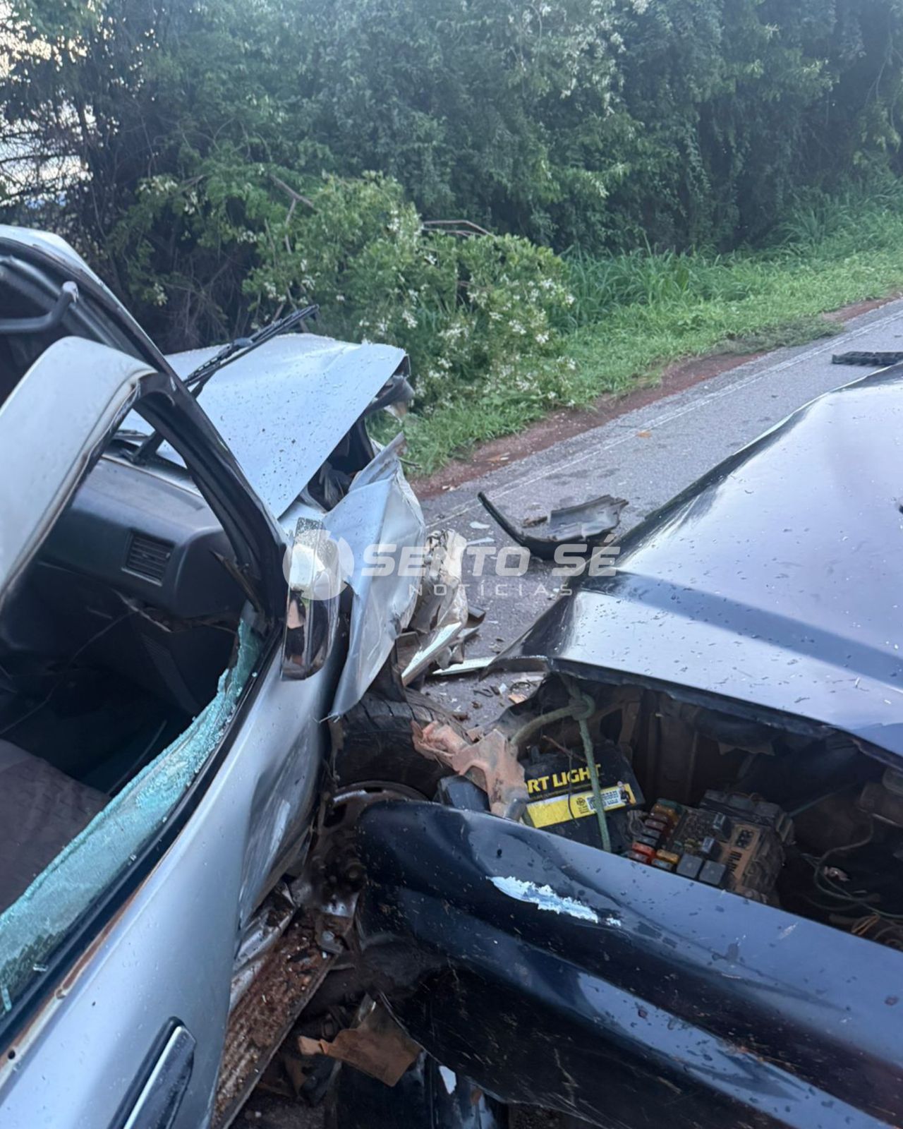 Com o impacto, a parte dianteira dos dois veículos ficou completamente destruída. Imagens feitas no local mostram a força da batida e os destroços espalhados pela pista.