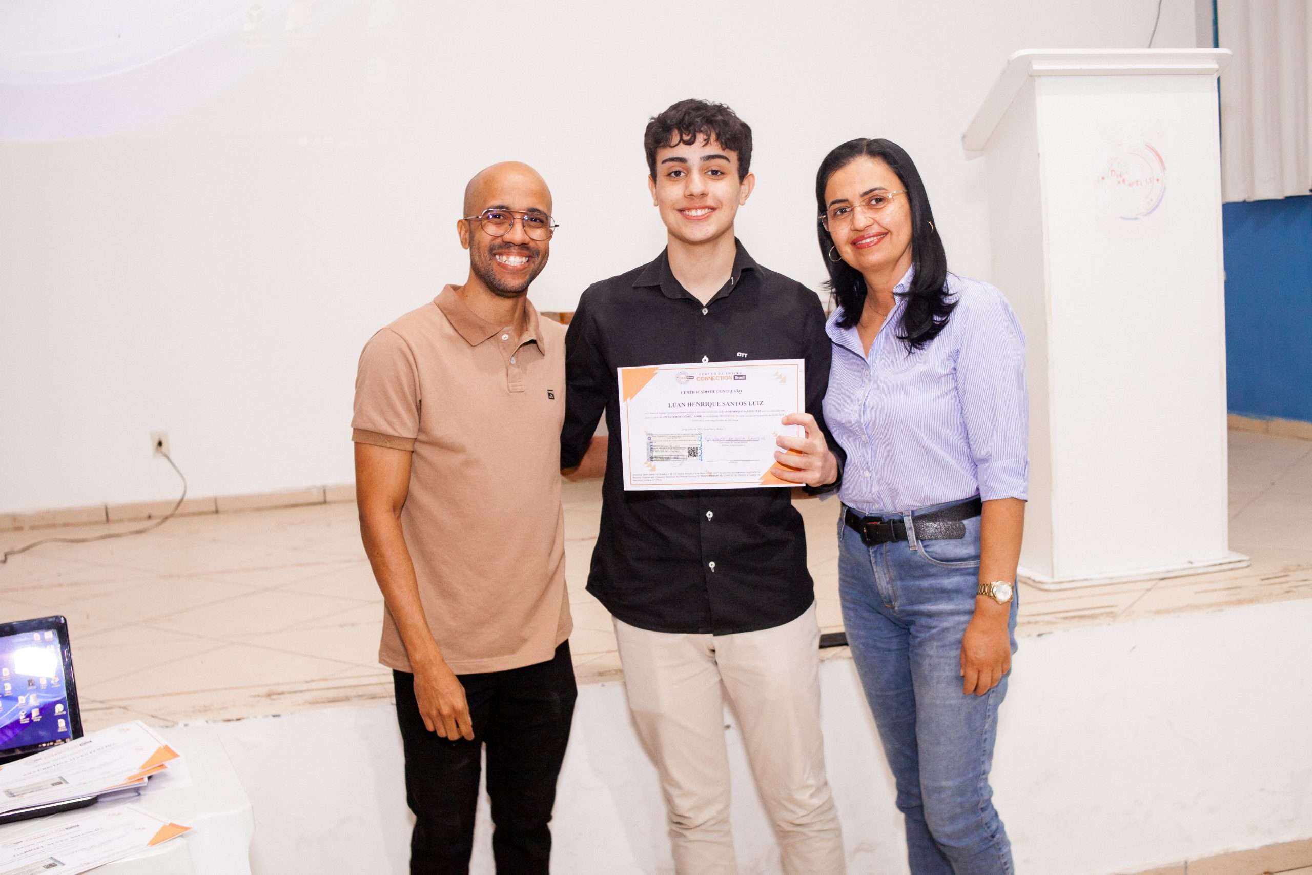 O Centro de Ensino Connection Brasil promoveu, em Remanso (BA), uma cerimônia especial de entrega de certificados para alunos que concluíram cursos oferecidos pela instituição. O evento reuniu estudantes, pais, professores e toda a equipe pedagógica da rede de ensino. Durante a solenidade, o professor Jorge Luiz ministrou uma palestra sobre Segurança digital e redes de computadores, abordando os desafios e cuidados necessários no uso da tecnologia no dia a dia.
