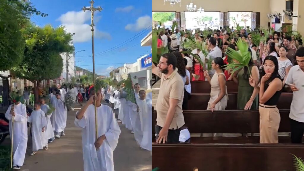 Neste domingo (29), fiéis católicos de Sento Sé, no norte da Bahia, participaram das celebrações de Domingo de Ramos, data que marca o início da Semana Santa no calendário religioso. A celebração relembra a entrada de Jesus em Jerusalém, episódio que antecede sua crucificação.