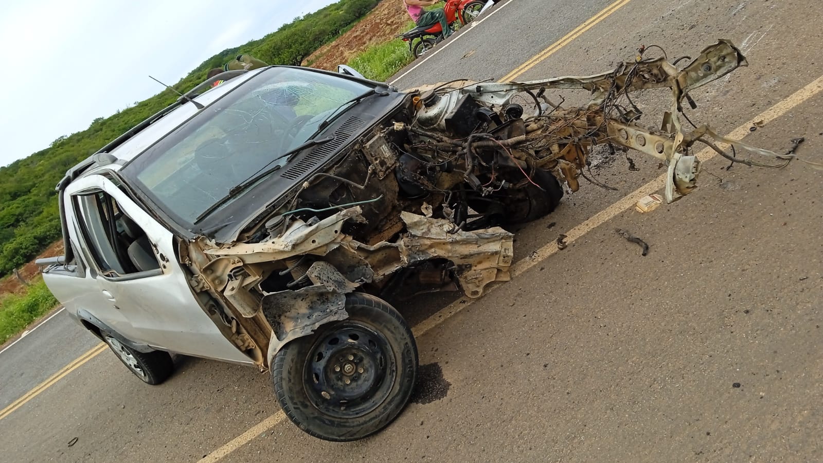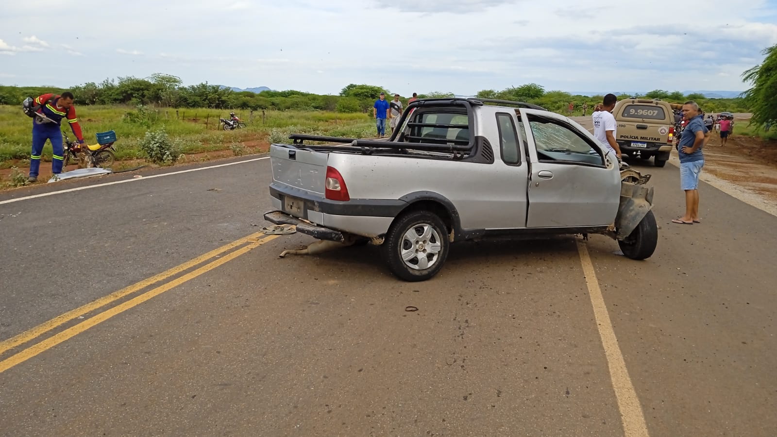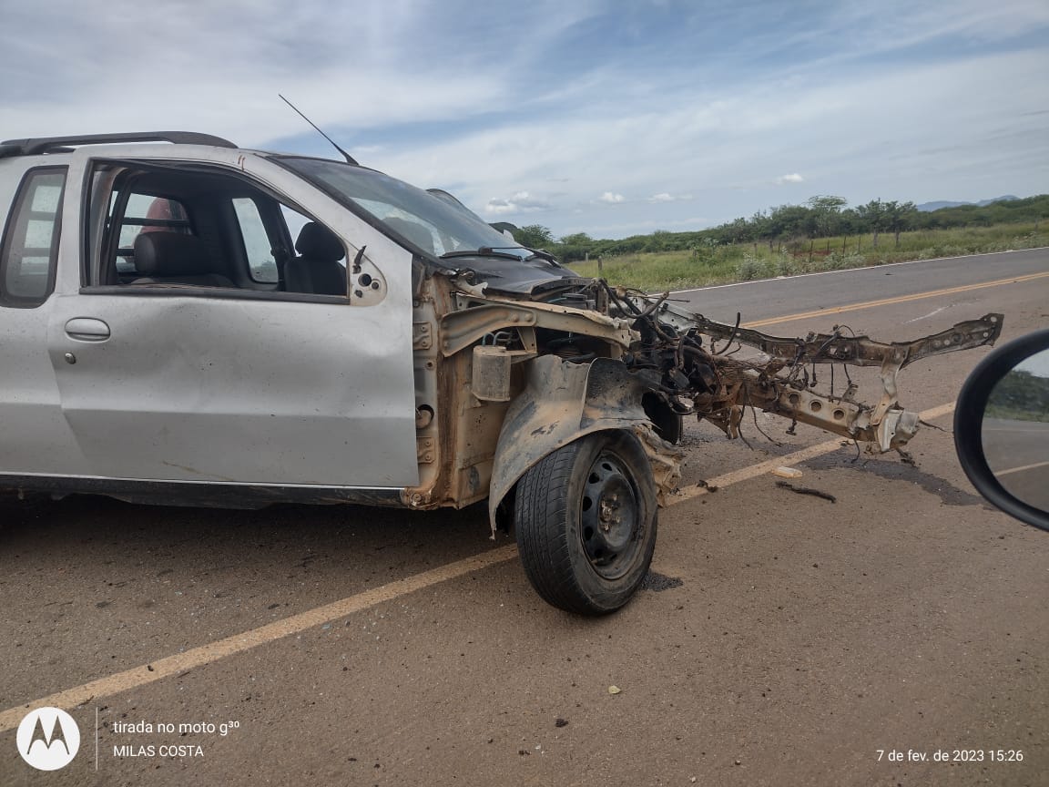 Um acidente foi registrado na tarde desta terça-feira (07), na BA-210, por volta das 15h30min, próximo da entrada da cidade de Sento Sé (na curva do batata). Um veículo picape modelo Strada que vinha do distrito de Riacho dos Pais sentido Sento Sé acabou perdendo o controle da direção e colidiu com uma caçamba. De acordo com a Brigada Voluntária Força e Resgate, o impacto da colisão foi tão forte que a caçamba tombou e o motor do carro jutamente com a caixa de marcha voou 40 metros do acidente.